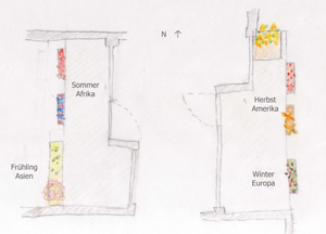 Westbalkon neu bepflanzt. Pro Balkon wurden zwei Kontinente